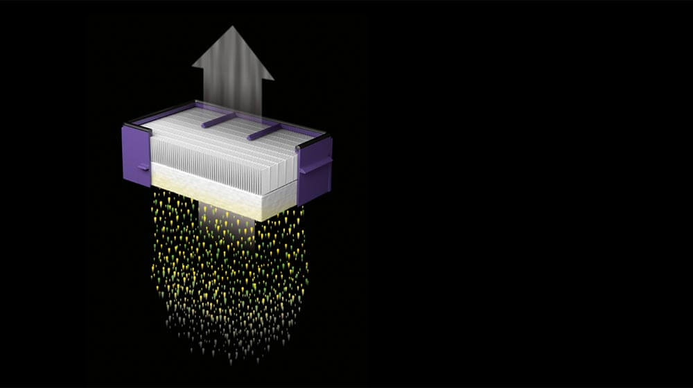 HEPA filter zachytáva častice zo vzduchu. Pozostáva z mriežky, ktorá zachytáva väčšie častice, fleesovej vrstvy, ktorá zachytáva prach a vlákna a skladaného materiálu HEPA, ktorý zachytáva častice s veľkosťou iba 0,1 mikrónu.